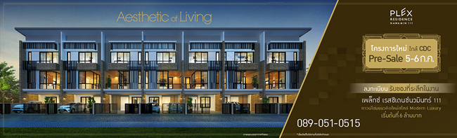 เพล็กซ์ เรสซิเดนท์ นวมินทร์ 111 (PLEX Residence Nawamin 111) ทาวน์โฮมโครงการใหม่ ใกล้ CDC แนวคิดใหม่สไตล์ Modern Luxury ผลงานชิ้นเอกที่สะท้อน รสนิยมแห่งการอยู่อาศัยได้อย่างมีระดับ ด้วยดีไซน์ที่ผสานระหว่างการใช้งาน และความงามที่ลงตัว เติมเต็มความสุขอย่างพิถีพิถันในทุกๆ ตารางเมตรสู่สุนทรียภาพแห่งการใช้ชีวิตของทุกคนอย่างแท้จริงราคาเริ่มต้นที่ 6 ล้านบาทPRE SALE 5-6 กรกฎาคมนี้ ท่านที่สนใจสามารถลงทะเบียนเพื่อรับข่าวสาร และของที่ระลึกในงาน ได้ที่ลิงก์ด้านล่างนี้*เงื่อนไขเป็นไปตามที่บริษัทกำหนดสนใจสอบถามรายละเอียดเพิ่มเติมได้ที่ โทร.089-051-0515 หรือทางเว็บไซต์ www.realasset.co.thข่าว-โปรโมชั่นล่าสุดอื่นๆ
