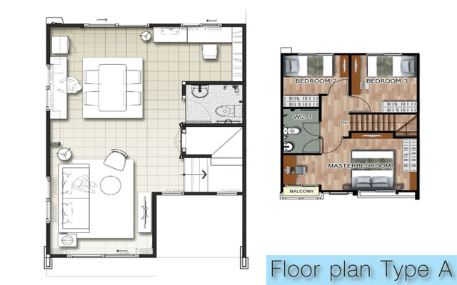 1. TYPE A - ทาวน์โฮม 3 ห้องนอน 2 ห้องน้ำ 1 ที่จอดรถ ขนาดที่ดิน 22.9 - 35.6 ตารางวา