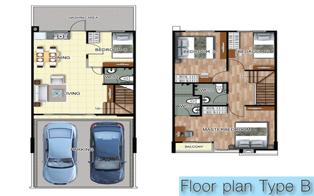 2. TYPE B - ทาวน์โฮม 4 ห้องนอน 3 ห้องน้ำ 2 ที่จอดรถ ขนาดที่ดิน 18.5 - 41.1 ตารางวา
