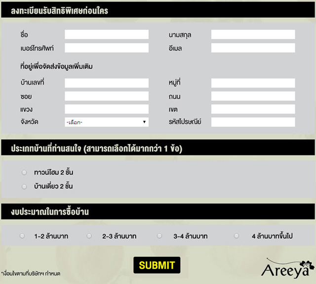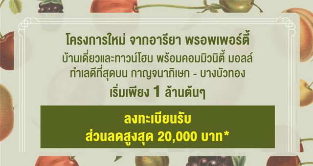 อารียา พรอพเพอร์ตี้ เตรียมเปิดตัวบ้านเดี่ยว และทาวน์โฮม โครงการใหม่ ต.ค. นี้ บนทำเลดีที่สุดของถนนกาญจนาภิเษก - บางบัวทอง พร้อมรับสิทธิ์ในการเลือกแปลงสวยที่สุดก่อนใคร สะดวกสบายทุกการจับจ่ายใช้สอย บนที่ตั้งติดกับคอมมิวนิตี้มอลล์ เพื่อเพิ่มคุณภาพชีวิตให้สมบูรณ์แบบยิ่งขึ้นในราคาเริ่มต้นเพียง 1 ล้านต้นๆท่านใดที่สนใจ สามารถลงทะเบียนเพื่อรับสิทธิพิเศษส่วนลด 20,000 บาท ได้ที่ลิงก์ด้านล่างนี้สอบถามรายละเอียดเพิ่มเติม โทร. 02-798-9999 เว็บไซต์ www.areeya.co.thข่าว-โปรโมชั่นล่าสุดอื่นๆ