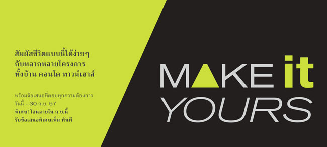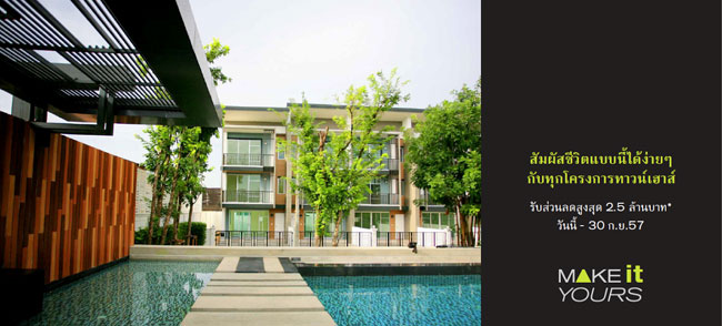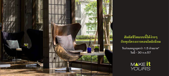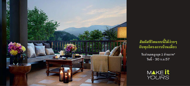 แสนสิริ จัดโปรฯ MAKE IT YOURS ส่วนลดจัดเต็มสูงสุด 2.5 ล้าน ฟรีเฟอร์ฯ ทั้งหลัง วันนี้-30 ก.ย.57