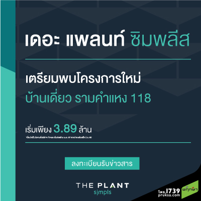 พฤกษาเตรียมเปิดตัวบ้านเดี่ยว โครงการใหม่ "เดอะแพลนท์ ซิมพลีส รามคำแหง 118" เริ่ม 3.89 ล้าน