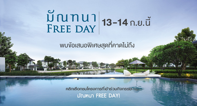 "มัณฑนา Free day!" ขึ้นในวันที่ 13-14 กันยายนนี้ เพื่อยื่นข้อเสนอสุดพิเศษให้กับลูกค้าที่สนใจบ้านในโครงการ "มัณฑนา" รับฟรี 3 รายการ