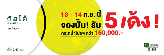 25 ธ.ค. 57 1,073กัสโต้ รามคำแหง 13-14 ก.ย. นี้ จองปั๊บ...รับ 5 เด้ง!! กระหน่ำโปรฯ กว่า 1.5 แสน เริ่ม 2.47 ล้านบาท*