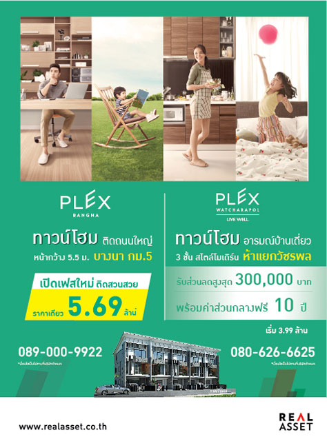เรียลแอสเสทฯ จัดโปรพิเศษส่งท้าย Q 3 กับทาวน์โฮม Plex (เพล็กซ์)