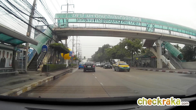 จากสี่แยกพงษ์เพชร ตรงมาอีกประมาณ 1.7 กม. จะผ่านสะพานลอยคนข้ามบริเวณด้านหน้ามหาวิทยาลัยธุรกิจบัณฑิตย์