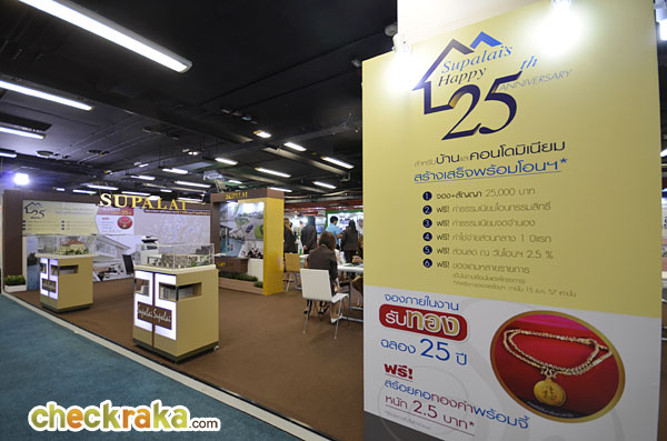ศุภาลัยนำอสังหาริมทรัพย์ทั้งบ้าน ทาวน์โฮม และคอนโดมิเนียมมาร่วมงานหลายโครงการ พิเศษ! จองบ้านและคอนโดภายในงานรับฟรี สร้อยคอทองคำพร้อมจี้ หนัก 2.5 บาท พร้อมโปรโมชั่นพิเศษๆ กับ Supalai's Happy 25th Anniversary สำหรับบ้านสร้างเสร็จพร้อมโอนฯ อีกมากมาย