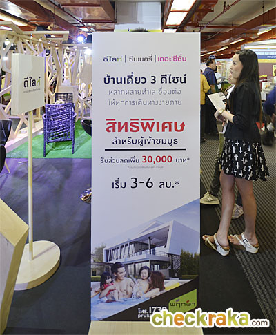 สำหรับโปรโมชั่นเกี่ยวกับบ้านในครั้งนี้ จองในงาน รับบัตรกำนัลมูลค่า 5,000 บาท เฉพาะ 4 วันนี้เท่านั้น และยังมีบ้านเดี่ยว 3 ดีไซน์ ของแบรนด์ ดีไลท์, ซีนเนอรี่ และเดอะซีซั่น เข้าชมบูธในงานรับส่วนลดเพิ่มถึง 30,000 บาท