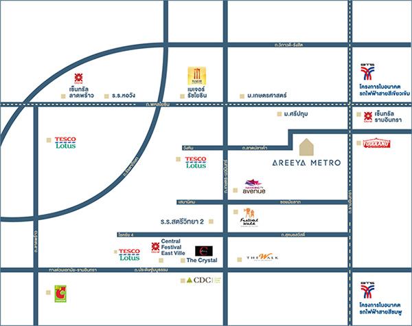 แผนที่โครงการ อารียา เมทโทร เกษตร-นวมินทร์สอบถามรายละเอียดเพิ่มเติม โทร. 1797 กด 43 หรือทางเว็บไซต์ areeya.co.thข่าว-โปรโมชั่นล่าสุดอื่นๆ