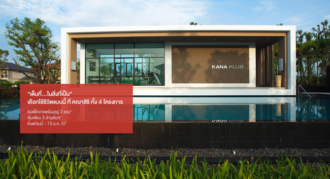 บริษัท แสนสิริ จำกัด (มหาชน) เปิดให้ลงทะเบียนจองโครงการ "คณาสิริ ( Kanasiri )" ทั้ง 4 ทำเล ได้แก่ คณาสิริ ชัยพฤกษ์ - วงแหวน, คณาสิริ บางนา, คณาสิริ วงแหวน-พระราม 5 และ คณาสิริ ศาลายา เปิดให้ผู้สนใจลงทะเบียนได้แล้วตั้งแต่วันนี้ -31 ธันวาคม 2557 หากลงทะเบียนรับข้อเสนอพิเศษเพิ่ม 20,000 บาท พร้อมรับแพคเกจพร้อมอยู่ มูลค่า 200,000 บาท โปรโมชั่นโดนใจแบบนี้ห้ามพลาดค่ะ