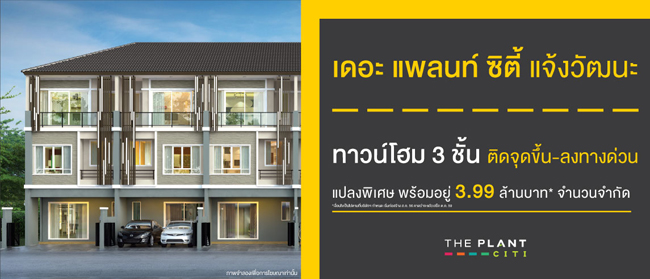ทาวน์โฮม 3 ชั้น ใจกลางเมืองทอง ติดจุดขึ้น-ลงทางด่วนด่านเมืองทองธานี กับเดอะแพลนท์ ซิตี้ แจ้งวัฒนะ