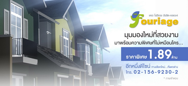 ทาวน์โฮม เดอะ โฟริเอช รังสิต-คลอง 4 ทาวน์โฮม 2 ชั้น หน้ากว้าง 6 เมตร เนื้อที่ 26 ตร.ว. ขนาด 3 ห้องนอน 3 ห้องน้ำ พื้นที่ใช้สอย 146 ตรม. พร้อมที่จอดรถ 2 คัน อีกหนึ่งดีไซน์ ทางเลือกใหม่..ที่แตกต่าง เดินทางสะดวกสบาย มาพร้อมความพิเศษที่ไม่เหมือนใคร บน ถ.รังสิต-ลำลูกกา คลอง 4 สามารถเข้า-ออกได้หลายทาง และใกล้จุดเชื่อมกับทางด่วนอีกมากมาย พร้อมถนนใหม่กว้าง 4 ช่องจราจร, ใกล้สถานีรถไฟฟ้าในอนาคต ทั้งสถานีตลาดรังสิต หรือสถานีลำลูกกา ครบครันด้วยแหล่งอำนวยความสะดวก ห้างสรรพสินค้า โรงเรียน โรงพยาบาล เปิดขายราคาพิเศษแล้ววันนี้