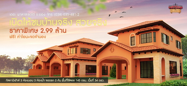 บ้านเดี่ยว เดอะ พาลาซเซตโต้ ระยอง ตั้งอยู่บนถนน 36 (บายพาส) กม.27 ตำบลมะขามคู่ อำเภอนิคมพัฒนา จังหวัดระยอง 21180 บ้านเดี่ยว Tuscany country design โดดเด่นสะดุดตาจากทุกมุมมอง ประกอบไปด้วย 3 ห้องนอน 3 ห้องน้ำ จอดรถ 2 คัน พื้นที่ใช้สอย 145 ตร.ม. เนื้อที่ 54 ตร.ว. เปิดขายราคาพิเศษ พร้อมฟรีค่าโอนและค่าจดจำนอง