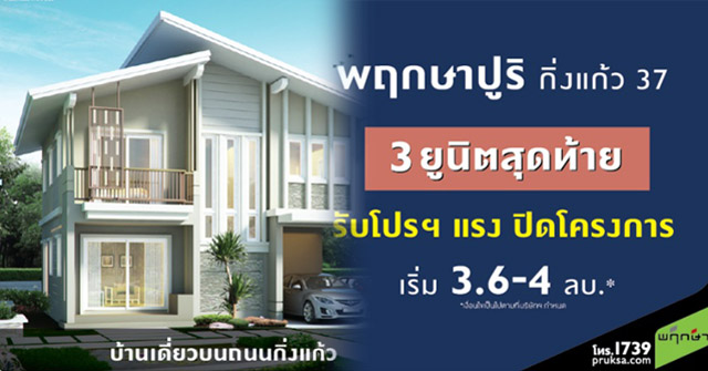 11 พ.ค. 58 3,651พฤกษา เรียลเอสเตท จัดโปรฯแรง 3 ยูนิตสุดท้าย ปิดโครงการ พฤกษาปูริ กิ่งแก้ว 37