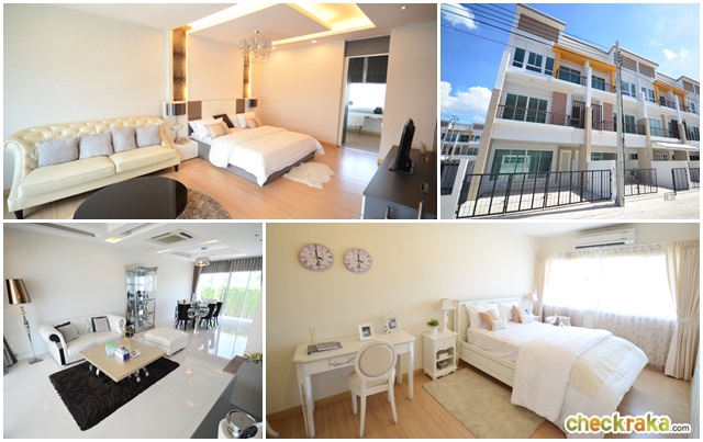 ภาพบรรยากาศภายในโครงการแบบบ้านภายในโครงการ- หน้ากว้าง 5.5 เมตร - ห้องนอนใหญ่อยู่ชั้น 3 พื้นที่ใช้สอย 187-190 ตารางเมตร* แบบ 3 ห้องนอน 3 ห้องน้ำ ที่จอดรถ 2 คัน