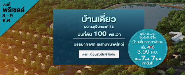7 ก.ค. 58 2,377มายโฮม ซิลเวอร์เลค บ้านเดี่ยวบนถนนสุวินทวงศ์ 78 Pre-Sale 8-9 ส.ค. นี้ ราคาพิเศษ 3.99 ล้านบาท