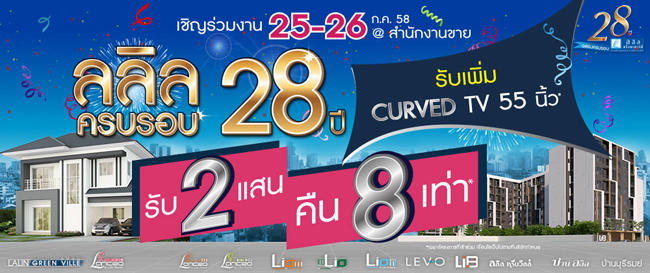 ลลิล พร็อพเพอร์ตี้ ฉลองครบรอบ 28 ปี แคมเปญครั้งยิ่งใหญ่ตอบแทนลูกค้า 25-26 ก.ค.นี้ ณ สำนักงานขาย