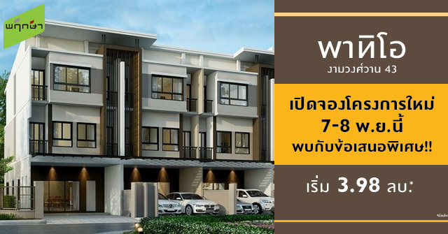 พฤกษาฯ เปิดจองทาวน์โฮมใหม่ "พาทิโอ งามวงศ์วาน 43" พบข้อเสนอพิเศษ 7-8 พ.ย. นี้ เริ่ม 3.98 ล้านบาท