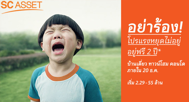 อย่าร้อง! โปรแรงหยุดไม่อยู่ จาก SC Asset อยู่ฟรี 2 ปี* เมื่อซื้อ บ้านเดี่ยว ทาวน์โฮม คอนโด ภายใน 20 ธ.ค. 58