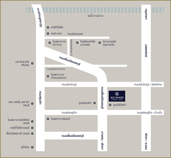 แผนที่ตั้งโครงการ เอคิว เชดิ ชลบุรี - บายพาสสำหรับท่านใดที่สนใจ สามารถลงทะเบียนเพื่อรับสิทธิพิเศษได้ที่ลิงก์ด้านล่างนี้ค่ะสอบถามรายละเอียดเพิ่มเติม โทร. 1636 หรือ www.aqestate.comข่าว-โปรโมชั่นล่าสุดอื่นๆ