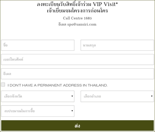 **วันที่ และเวลา ทางทีมเซลล์จะเป็นผู้แจ้งลูกค้ากลับไปสนใจสอบถามรายละเอียดเพิ่มเติมได้ที่ โทร. 1685 หรือทางเว็บไซต์ www.sansiri.comข่าว-โปรโมชั่นล่าสุดอื่นๆ