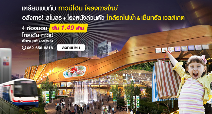 4 มี.ค. 59 3,941โกลเด้น ทาวน์ ชัยพฤกษ์ - วงแหวน เปิดให้ลงทะเบียนทาวน์โฮมโครงการใหม่ 4 ห้องนอน เริ่ม 1.49 ล้าน*
