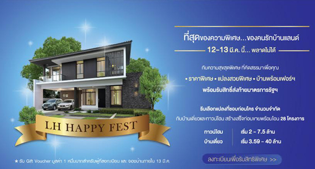 แลนด์ แอนด์ เฮ้าส์ จัดแคมเปญ "LH HAPPY FEST" ที่สุดของความพิเศษ...ของคนรักบ้านแลนด์ 12-13 มีนาคม นี้