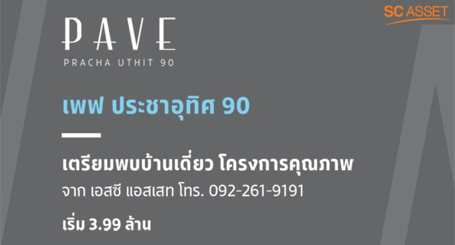 เอสซี แอสเสทฯ เปิดจองโครงการใหม่ "เพฟ ประชาอุทิศ 90" เริ่ม 3.99 ล้านบาท