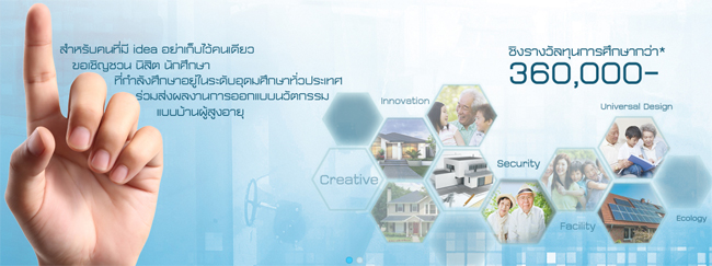 การเคหะแห่งชาติชี้แนวโน้มประชากรสูงวัยของไทยพุ่ง ถึงเวลาต้องออกแบบบ้านเพื่อผู้สูงอายุ ด้วยการเฟ้นหาสุดสอดนักออกแบบรุ่นใหม่ไฟแรง ที่มีความคิดสร้างสรรค์เข้าร่วมแข่งขัน โครงการส่งเสริมการพัฒนานวัตกรรมการออกแบบ"บ้านผู้สูงอายุ ที่ไม่ใช่ผู้สูงอายุ" ตั้งแต่บัดนี้ถึงวันที่ 8 พฤษภาคม 2559 ชิงทุนการศึกษา รวมมูลค่ากว่า 300,000 บาท พร้อมศึกษาดูงานนวัตกรรมด้านผู้สูงอายุ