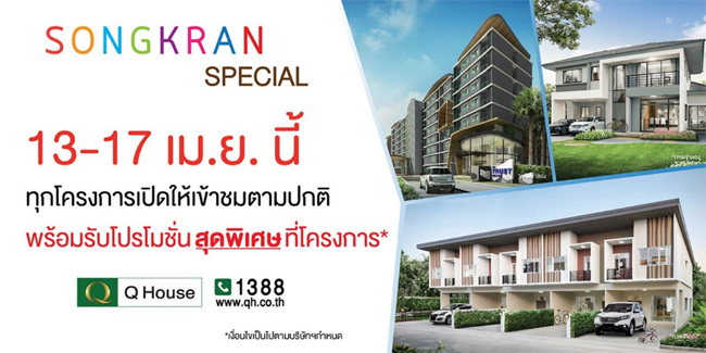 11 เม.ย. 59 2,342ควอลิตี้เฮ้าส์ ส่งแคมเปญ"สงกรานต์ สเปเชียล" เปิดตลอดวันหยุด เอาใจผู้ซื้อส่งท้ายมาตรการรัฐ