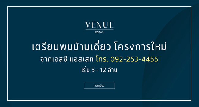 เตรียมพบบ้านเดี่ยวโครงการใหม่ "VENUE RAMA 5" จาก เอสซี แอสเสทฯ เริ่ม 5 - 12 ล้านบาท