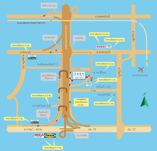 แผนที่โครงการคาซ่า แกรนด์ อ่อนนุช ? วงแหวนโครงการตั้งอยู่ที่ 39/70 ถนนกาญจนาภิเษก แขวงดอกไม้ เขตประเวศ กรุงเทพฯ 10250 สนามบินสุวรรณภูมิ, มหาวิทยาลัยอัสสัมชัญ บางนา (ABAC), โรงเรียนบางกอกพัฒนา, โรงเรียนนานาชาติเซนต์แอนดรู (สุขุมวิท 107), โรงเรียนอนุบาลนานาชาติ เซนต์ไมเคิล, โรงพยาบาลสิรินธร, โรงพยาบาลจุฬารัตน์, ไบเทค บางนา, อีเกีย, เมกะบางนา และเซ็นทรัล บางนาภาพบรรยากาศภายในบ้าน