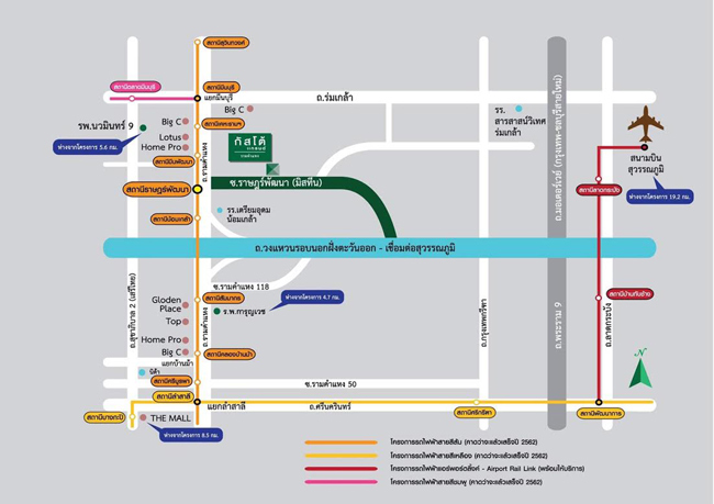 โครงการกัสโต้ แกรนด์ รามคำแหง (Gusto Grand Ramkhamhaeng) เดินทางสะดวก สามารถเข้า - ออกโครงการได้ 2 เส้นทาง คือ ถนนรามคำแหงเข้าแยกมิสทีน และถนนร่มเกล้า เข้าซอยร่มเกล้า 24 และในอนาคตจะมีโครงการรถไฟฟ้าสายสีส้ม ช่วงตลิ่งชัน-มีนบุรี โดยสถานีที่ใกล้ที่สุดคือสถานีราษฎร์พัฒนา ห่างจากโครงการประมาณ 700 เมตร ซึ่งคาดว่าน่าจะเปิดบริการได้ในปี พ.ศ. 2564 ค่ะสอบถามรายละเอียดเพิ่มเติม โทร. 1388 หรือทางเว็บไซต์ www.qh.co.thแท็กที่เกี่ยวข้อง :