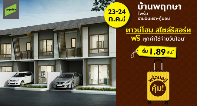พฤกษา จัดโปรโมชั่นพิเศษ "บ้านพฤกษา ไพรม์ รามอินทรา-คู้บอน" ทาวน์โฮมสไตล์รีสอร์ท ฟรี ทุกค่าใช้จ่ายวันโอน เริ่ม 1.89 ล้านบาท 23-24 ก.ค. นี้