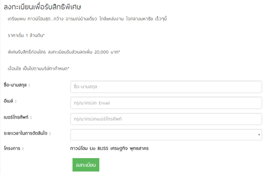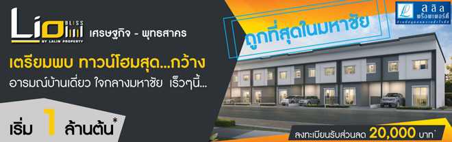บริษัท ลลิล พร็อพเพอร์ตี้ จำกัด (มหาชน) เปิดให้ลงทะเบียนจองทาวน์โฮมโครงการใหม่ "ไลโอ บลิสซ์ เศรษฐกิจ - พุทธสาคร (Lio BLISS Setthakit - Phutthasakhon)" เตรียมพบ ทาวน์โฮมสุดกว้าง อารมณ์บ้านเดี่ยว ใกล้แหล่งงาน และเซ็นทรัลมหาชัย ใจกลางมหาชัย เร็วๆ นี้ เริ่มเพียง 1 ล้านต้น* พิเศษรับสิทธิ์ก่อนใคร ลงทะเบียนรับส่วนลดเพิ่ม 20,000 บาท ได้แล้ววันนี้ อย่ารอช้าพิเศษแบบนี้ต้องรีบจับจองกันเลยค่ะท่านที่สนใจสามารถลงทะเบียนเพื่อรับสิทธิพิเศษได้แล้วที่ลิงก์ด้านล่างนี้*หมายเหตุ เป็นไปตามเงื่อนไขที่บริษัทฯ กำหนดสอบถามข้อมูลเพิ่มเติม โทร. 1778 และเว็บไซต์ www.lalinproperty.comแท็กที่เกี่ยวข้อง :