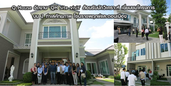 บริษัท ควอลิตี้เฮ้าส์ จำกัด (มหาชน) จัดงาน 'QH site visit' เชิญนักวิเคราะห์จากบริษัทหลักทรัพย์ชั้นนำต่างๆ และนักลงทุนเยี่ยมชม 6 โครงการในเครือควอลิตี้เฮ้าส์ ที่ครบครันด้วยแบบบ้านรุ่นใหม่ ฟังก์ชั่นใหม่ที่ลงตัว รวมถึงสิ่งอำนวยความสะดวกและสภาพแวดล้อมโครงการที่สมบูรณ์เพื่อการพักอาศัยอย่างแท้จริง บน 2 ทำเลศักยภาพ คือ โซนราชพฤกษ์ ที่พลิกโฉมการเดินทางด้วยระบบคมนาคมเชื่อมต่อหลากหลาย ทั้งรถไฟฟ้าสายสีม่วง และทางด่วนศรีรัช-วงแหวนรอบนอกฯ ที่เพิ่งเปิดให้บริการช่วงเดือนสิงหาคม 2559 ที่ผ่านมา และโซนดอนเมือง ทำเลทองแห่งการใช้ชีวิตของ คนรุ่นใหม่ ใกล้จุดขึ้น-ลงทางด่วนฯ ด่านศรีสมาน ทางยกระดับดอนเมืองโทลล์เวย์ และโครงการรถไฟฟ้าสายสีแดง ในอนาคตอันใกล้ ช่วยลดระยะเวลาการเดินทางเข้าสู่ใจกลางเมืองได้สะดวกรวดเร็ว