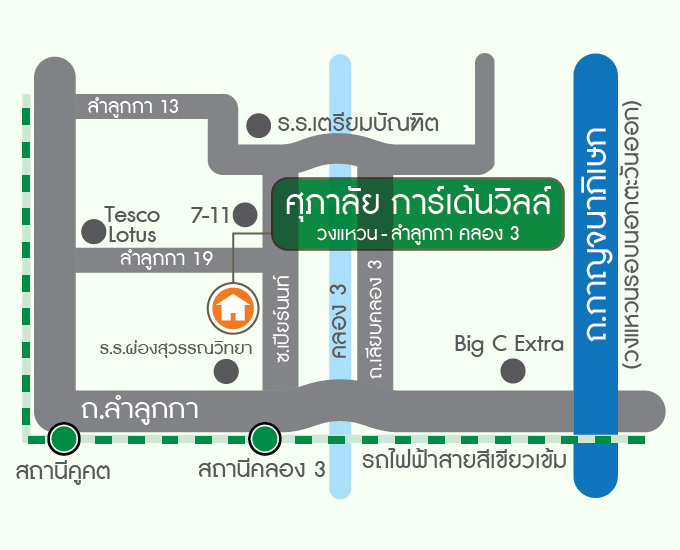 ที่ตั้งโครงการ ศุภาลัย การ์เด้นวิลล์ วงแหวน - ลำลูกกา คลอง 3ผู้สนใจสามารถสอบถามข้อมูลโปรโมชั่นพิเศษ Supalai Year End Special ได้ที่สำนักงานขาย