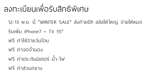 10 พ.ย. 59 1,367ลลิล พร็อพเพอร์ตี้ จัดแคมเปญใหญ่ "Winter Sale: ส่งท้ายปี ลลิล ให้ใหญ่ จ่ายให้หมด"