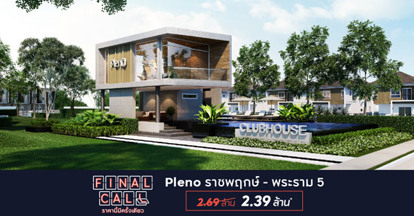 เอพี (ไทยแลนด์) จัดแคมเปญ Final Call ราคานี้มีครั้งเดียว กับ Pleno พรีเมี่ยม ทาวน์โฮม 2 ชั้น ลดสูงสุด 600,000 บาท*