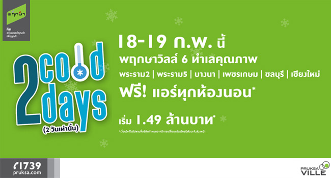 พฤกษา จัดโปรฯ พฤกษาวิลล์ 6 ทำเลคุณภาพ ฟรีแอร์ทุกห้องนอน* เริ่ม 1.49 ล้านบาท* 18-19 ก.พ. นี้ เท่านั้น