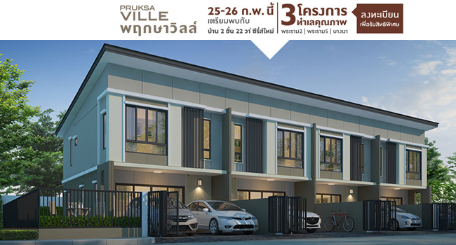 เตรียมพบกับ พฤกษาวิลล์ 3 โครงการ ทำเลคุณภาพ บ้านซีรีส์ใหม่ ทาวน์โฮม 2 ชั้น 25 - 26 ก.พ. นี้