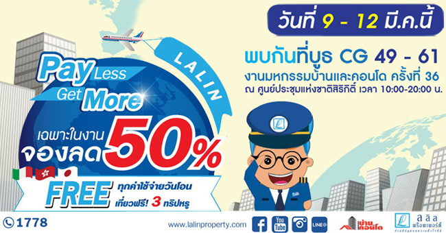 บริษัท ลลิล พร็อพเพอร์ตี้ จำกัด (มหาชน) ยกขบวนโครงการที่อยู่อาศัยคุณภาพ บนทำเลทอง กว่า 40 โครงการ ร่วมงานมหกรรมบ้านและคอนโด ครั้งที่ 36 เชื่อมั่นมีกำลังซื้อที่รอคอยสูง ทุ่มแคมเปญใหญ่คุ้มที่สุด "Pay Less Get More" จ่ายน้อย ได้มาก มอบความคุ้มค่าให้กับลูกค้าที่จองเฉพาะในงาน รับส่วนลดเงินจอง 50% ฟรีทุกค่าใช้จ่ายวันโอน พร้อมเที่ยวฟรี 3 ทริปหรู ให้เลือก 3 ประเทศ ได้แก่ ฮ่องกง ญี่ปุ่น และอิตาลี พบกันที่บูธ CG 49-61 ณ ศูนย์ประชุมแห่งชาติสิริกิติ์ วันที่ 9-12 มีนาคมศกนี้