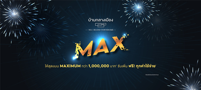 พลาดไม่ได้กับ No.1 Hi-End ทาวน์โฮมแบรนด์ บ้านกลางเมือง จัดแคมเปญ "บ้านกลางเมือง MAX" สำหรับไฮเอนด์ทาวน์โฮมกลางเมืองพร้อมอยู่ใน 22 ทำเล เช่น พระราม 9-อ่อนนุช, สุขุมวิท 77, งามวงศ์วาน, พหลโยธิน 50, วิภาวดี, สุขสวัสดิ์, รัตนาธิเบศร์ เป็นต้น ราคาเริ่มต้น 3.99 - 8.99 ล้านบาท โดยให้ส่วนลดสุดๆ แบบ Maximum มูลค่าสูงสุด 1,000,000 บาท และฟรีทุกค่าใช้จ่าย ณ วันโอน* ตั้งแต่วันนี้ - 16 เมษายนนี้