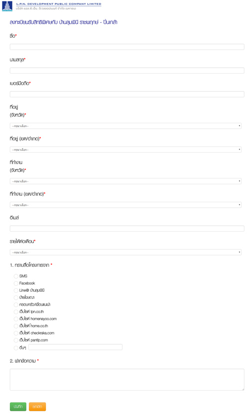 บริษัท แอล.พี.เอ็น. ดีเวลลอปเมนท์ จำกัด (มหาชน) (LPN) เตรียมเปิด โครงการบ้านลุมพินี ทาวน์วิลล์ ราชพฤกษ์ - ปิ่นเกล้า (BaanLumpini Town Ville Ratchaphruek - Pinklao) เป็นทาวน์โฮม 2 ชั้น ทำเลราชพฤกษ์ - ปิ่นเกล้า โดยสามารถลงทะเบียนเพื่อรับข่าวสาร และรับส่วนลด 10,000 บาทได้ตั้งแต่วันนี้เป็นต้นไปท่านที่สนใจสามารถลงทะเบียนเพื่อรับส่วนลดพิเศษ 10,000 บาท ได้ที่ลิงก์ด้านล่างนี้สอบถามรายละเอียดเพิ่มเติม โทร. 02-689-6888 และเว็บไซต์ www.lpn.co.th/baanlumpiniแท็กที่เกี่ยวข้อง :