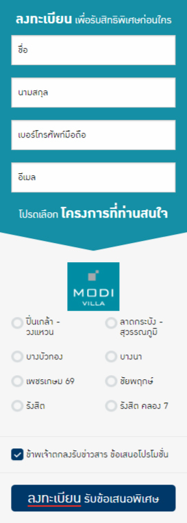 บริษัท พร็อพเพอร์ตี้ เพอร์เฟค จำกัด (มหาชน) จัดโปรโมชั่นพิเศษสำหรับลูกค้าที่สนใจบ้านกับแคมเปญ SMART LIVING IN 2 STYLES กับ MODI VILLA สัมผัสความสมบูรณ์พร้อมเพื่อชีวิตที่ทันสมัยด้วย ทาวน์โฮม และบ้านแนวคิดใหม่ 2 สไตล์ 2 รูปแบบ ทั้ง Modern และ European พร้อมรับข้อเสนอสุดสมาร์ท กับ โมดิ วิลล่า โครงการอยู่อาศัยที่อยู่เหนือมาตรฐาน ด้วยการออกแบบให้เป็น Perfect Digital Village ที่ครบครันความ เพื่อการพักผ่อนอย่างสมบูรณ์แบบ เริ่ม 1.99 ล้านบาทท่านที่สนใจสามารถลงทะเบียนเพื่อรับสิทธิพิเศษได้ที่ลิงก์ด้านล่างนี้SMART LIVING PACKAGE รับข้อเสนอที่ดีที่สุดภายใน 31 พ.ค. นี้1. ล็อคดอกเบี้ย 2% นาน 2 ปี