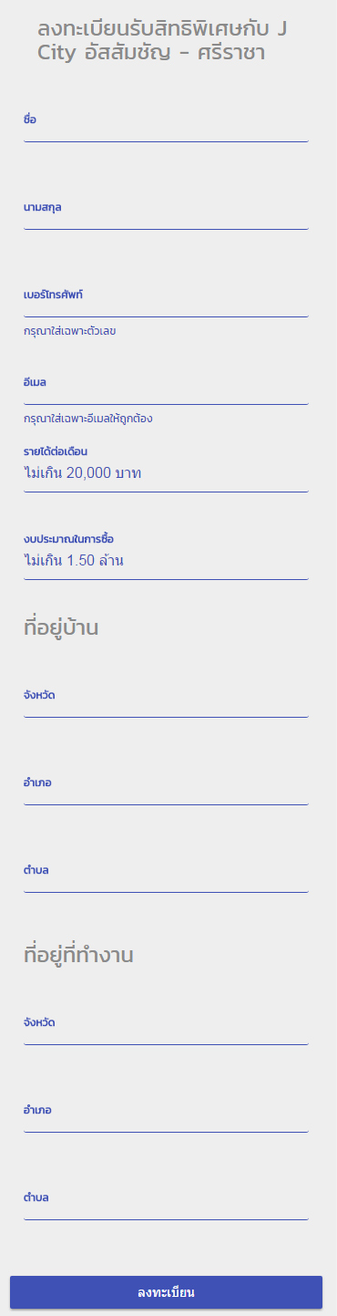 ยิ้มรับทรัพย์ไตรมาส 2/2560 สำหรับ บมจ. เจ.เอส.พี. พร็อพเพอร์ตี้ ล่าสุดทางพี่แจ้ ไพโรจน์ วัฒนวโรดม กรรมการผู้จัดการบริษัท เจ.เอส.พี.แอสพลัส จำกัด และรองกรรมการผู้จัดการอาวุโส บมจ.เจ.เอส.พี. พร็อพเพอร์ตี้ แอบกระซิบให้ฟังว่า ได้ทำการเปิดพรีเซลโครงการน้องใหม่ "เจซิตี้ ศรีราชา-อัสสัมชัญ" ทาวน์โฮมสไตล์อังกฤษ 4 ห้องนอน พร้อมคลับเฮ้าส์หรู ใจกลางเมืองศรีราชา ติดโรงเรียนอัสสัมชัญไป ด้วยราคาเริ่มต้นเพียง 1.59 ล้านบาท โดยกระแสแรงตั้งแต่วันแรกที่เปิดจอง! เพราะแค่ 2 ชม. สามารถทำยอดขายทะลุเป้ากว่า 100 ล้านบาท และปิดเฟส 1 ได้ในพริบตา... โอ้โห!! นี่เพียงแค่เปิดจองรอบแรกไปวันเดียวยังสามารถทำยอดขายได้ขนาดนี้ อนาคตผลประกอบการเจ.เอส.พี. ไตรมาส 2 คงไม่ต้องบอกว่าจะสดใสขนาดไหนใช่ไหมคะโครงการ "เจซิตี้ ศรีราชา-อัสสัมชัญ" ทำการเปิดพรีเซลครั้งแรก รอบ VIP Booking ตั้งแต่วันที่ 15-25 พ.ค. 2560 นี้ ณ บูธโรบินสัน ศรีราชา ชั้น 1ท่านที่สนใจสามารถลงทะเบียนได้ที่ลิงก์ด้านล่างนี้ค่ะผู้สนใจสอบถามรายละเอียดเพิ่มเติม โทร. 092-529-1591 เว็บไซต์ https://jsp.co.thแท็กที่เกี่ยวข้อง :