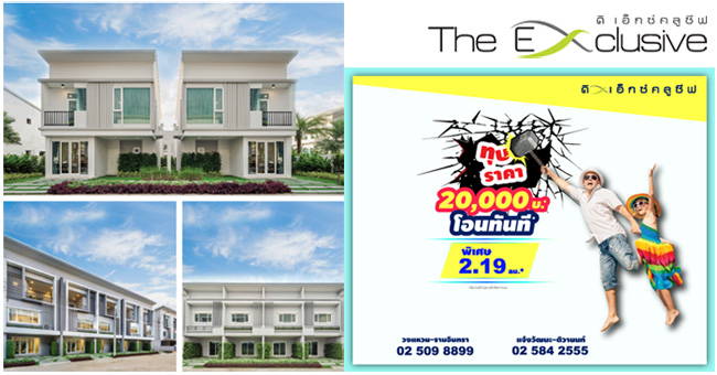 ดิเอ็กซ์คลูซีฟ จัดหนักส่งโปรฯ "ทุบราคา ท้ามาจอง" โครงการทาวน์โฮม/บ้านแฝด เริ่มเพียง 2.19 ลบ.*