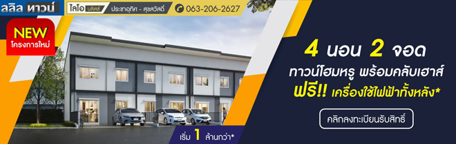 *เงื่อนไขเป็นไปตามที่บริษัทฯ กำหนดสอบถามรายละเอียดเพิ่มเติม โทร 1778 เว็บไซต์ www.lalinproperty.comข่าว-โปรโมชั่นล่าสุดอื่นๆ