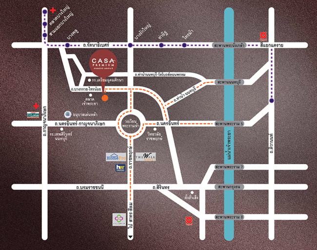 โครงการ คาซ่า พรีเมี่ยม ราชพฤกษ์-พระราม5 ตั้งอยู่บริเวณถนนบางกรวย-ไทรน้อย อำเภอบางกรวย จังหวัดนนทบุรี 11130