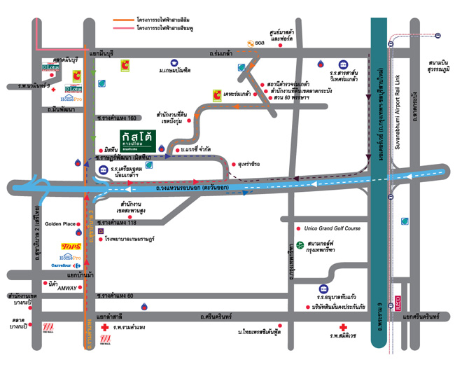 ที่ตั้งของกัสโต้ ทาวน์โฮม รามคำแหง ถือได้ว่าเป็นทำเลที่ดี สะดวกต่อการเดินทาง เนื่องจากสามารถเข้าออกได้หลายทาง เชื่อมกับถนนหลายเส้น ไม่ว่าจะเป็น ถ.สุขาภิบาล 3, ถ.รามคำแหง, ถ.วงแหวนรอบนอก (ตะวันออก), มอเตอร์เวย์, ถ.ร่มเกล้า สามารถเดินทางไปท่าอากาศยานสุวรรณภูมิได้อย่างสะดวก รองรับโครงการรถไฟฟ้าสายสีส้ม และ โครงการรถไฟฟ้าสายสีชมพูในอนาคตอีกด้วย